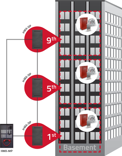 Evacuar a las personas en un edificio de gran altura puede resultar muy complejo durante una situación de emergencia. Proteger a aquellos que aún no se han notificado del incidente requiere de un equipo especial que los notifique a tiempo para cumplir el protocolo y salir a salvo. Los rescatistas tienen la necesidad de comunicarse y hablar directamente con los ocupantes potencialmente afectados e informales el camino más propicio para llegar a la salida de emergencia. Gracias a este sistema, también se podrá alertar a quienes no estén en peligro inmediato y solicitarles su retiro en el momento más conveniente, sin que esto perjudique la salida de los que se encuentran en un peligro más crítico. Nuestro Sistema de Audio evacuación para edificios de gran altura es altamente efectivo y permite una salida segura del edificio. Para estos casos, en Securiton, utilizamos equipos de la más alta tecnología y calidad: el sistema multiplex para gran altura HMX, que es capaz de cumplir con todos los requisitos e incluyen telefonía de bomberos bidireccional, mensajes pregrabados y operación de doble canal.